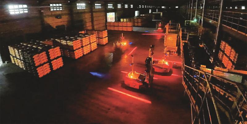 圖為AGV無人叉車在心連心集團“黑燈倉庫”嫻熟作業(yè)場面